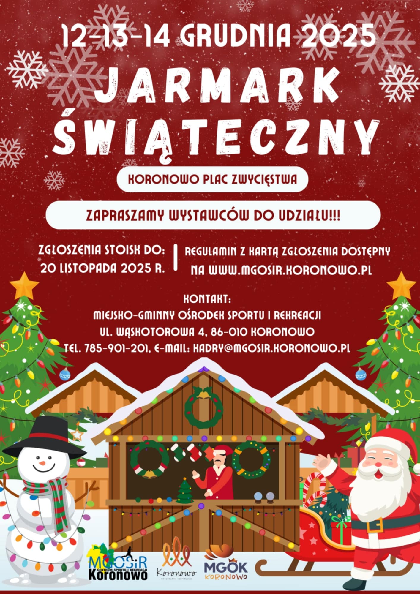 Z przyjemnością zapraszamy rękodzielników, lokalnych twórców, przedsiębiorców, koła gospodyń, artystów i wszystkich chętnych do udziału w Jarmarku Świątecznym, który odbędzie się: