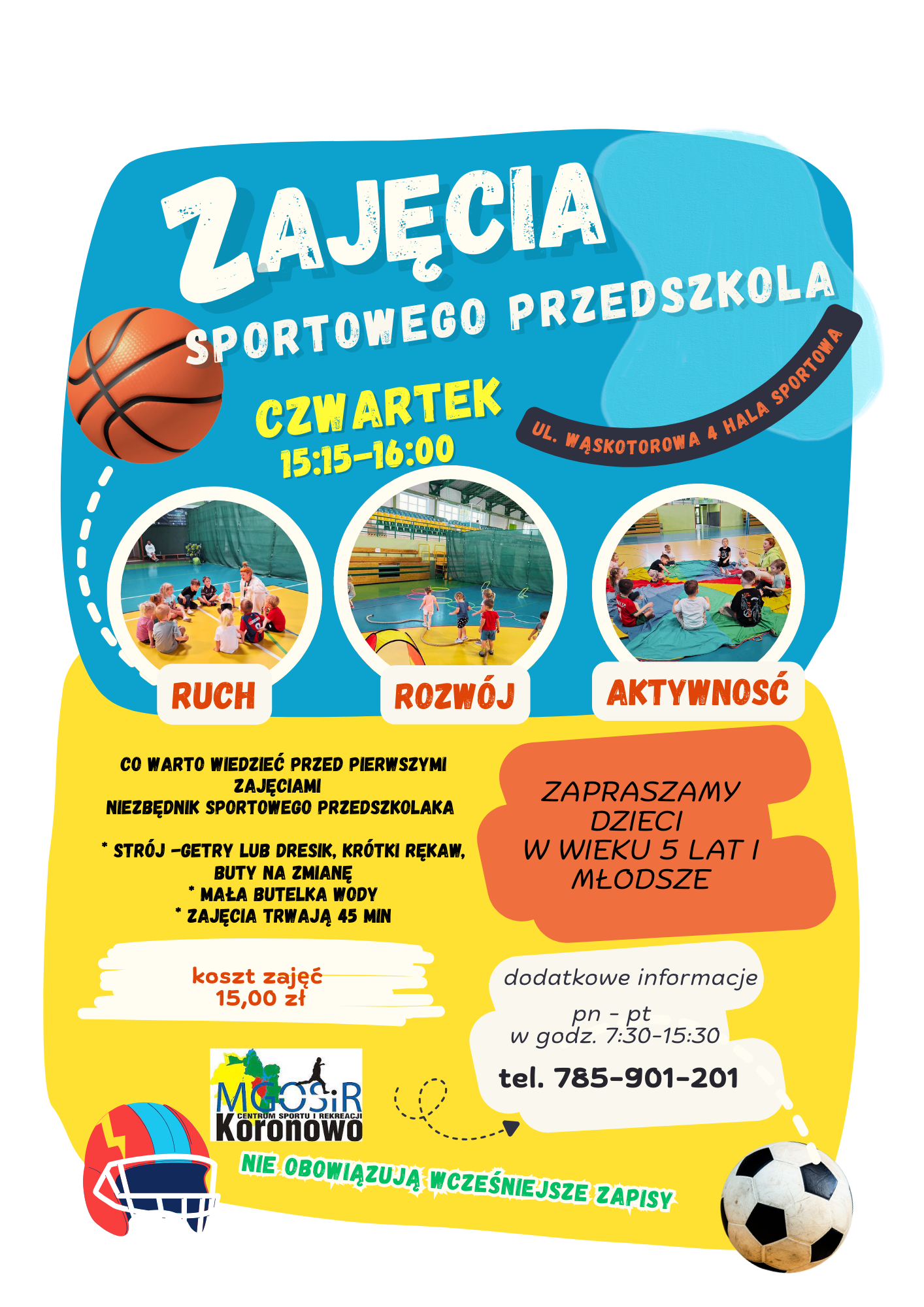 Serdecznie zaproszamy dzieci w wieku 5 lat i młodsze na zajęcia sportowego przedszkola!