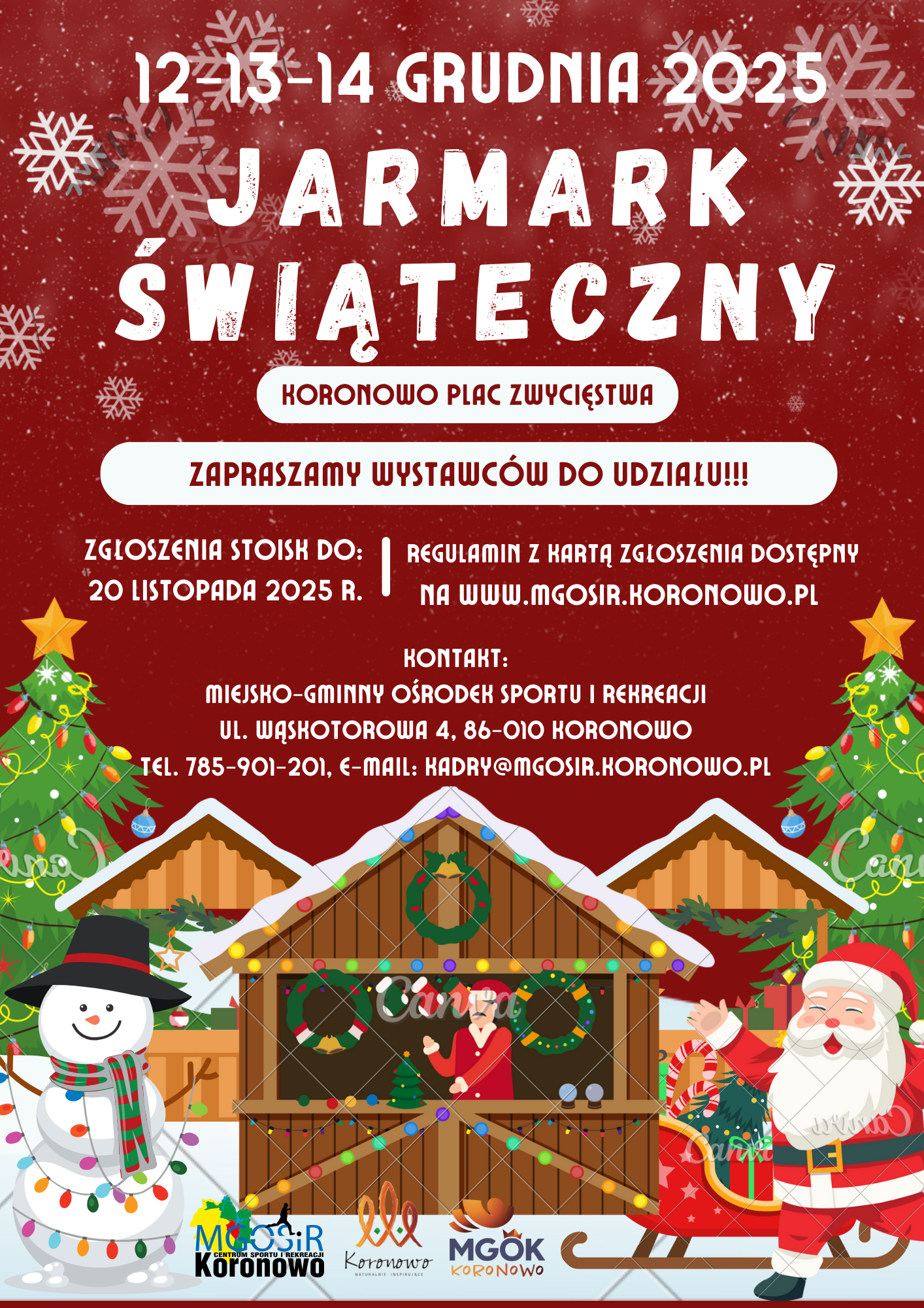 Z przyjemnością zapraszamy rękodzielników, lokalnych twórców, przedsiębiorców, koła gospodyń, artystów i wszystkich chętnych do udziału w Jarmarku Świątecznym, który odbędzie się: