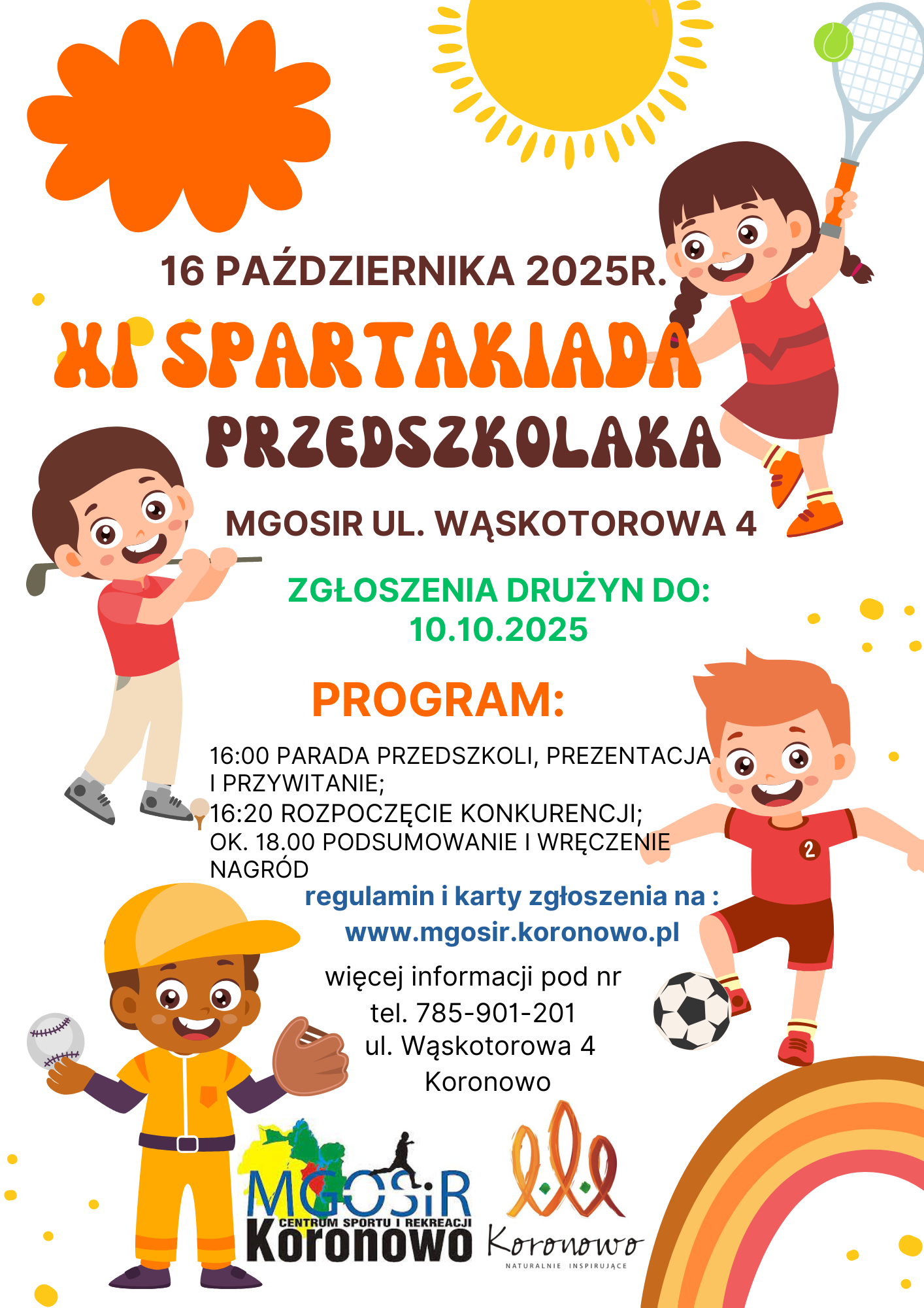 Serdecznie zapraszamy na XI Spartakiadę Przedszkolaka,czyli sportowy dzień pełen zabawy, uśmiechu i zdrowej rywalizacji!